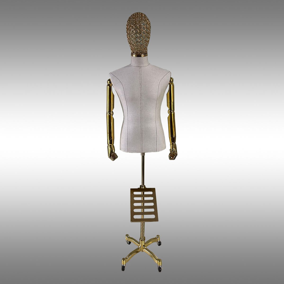 Bayan-Erkek plastik terzi mankeni gold-krom kollu tel kafalı tekerlekli ayak